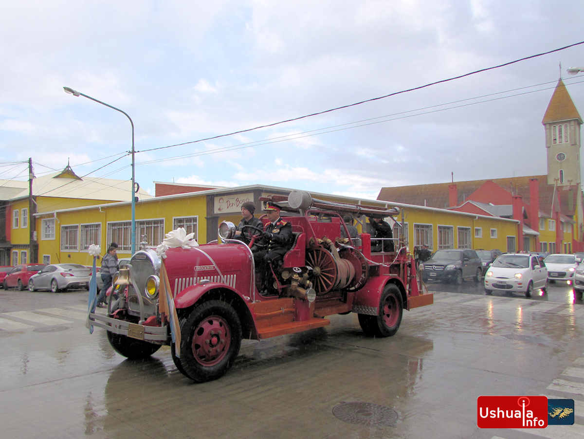 14/02/2015 | 19:37 hs. La antigua autobomba de los Bomberos de Ushuaia protagoniza un casamiento en el centro de la ciudad