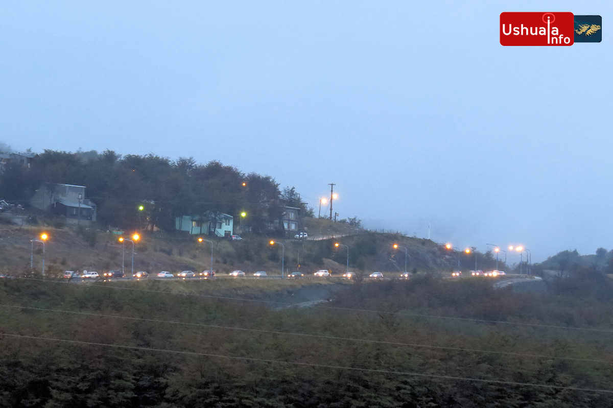 07:49 hs. Bajo la lluvia, el tráfico matutino es intenso - Un Instante en Ushuaia - Ushuaia-Info