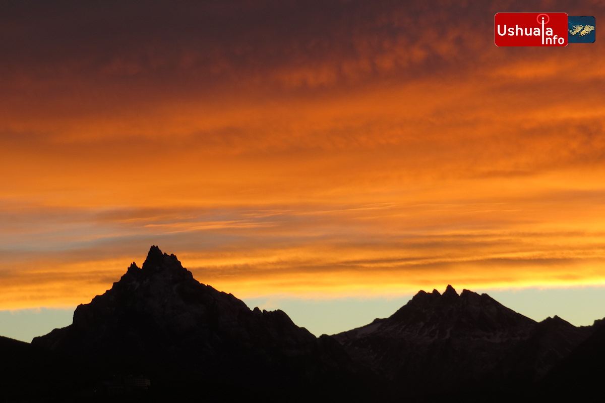 08:14 hs. Cielo encendido en el amanecer - Un Instante en Ushuaia - Ushuaia-Info