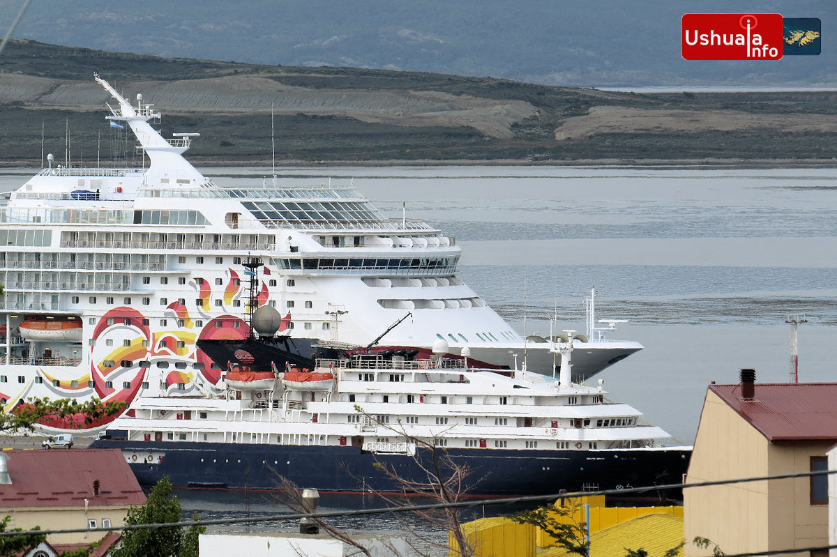 10:33 hs. Los cruceros se confunden con los edificios de la ciudad - Un Instante en Ushuaia - Ushuaia-Info