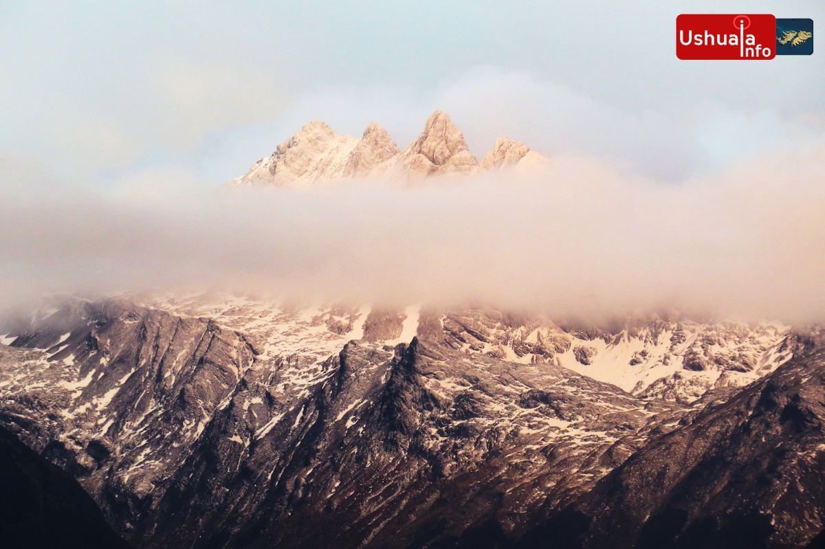 17:13 hs. Una nube atraviesa la silueta del Monte Cinco Hermanos - Un Instante en Ushuaia - Ushuaia-Info