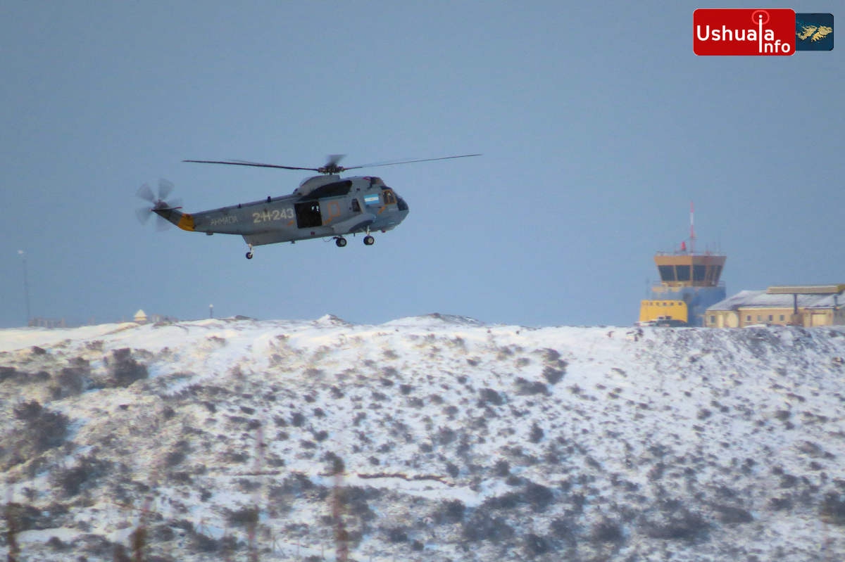 04/07/2016 | 10:50 hs. Un helicóptero de la Armada sobrevuela la península de Ushuaia