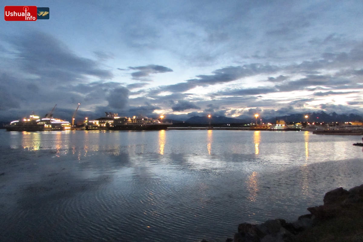 23:21 hs. Cruceros iluminados en el muelle de Ushuaia - Un Instante en Ushuaia - Ushuaia-Info