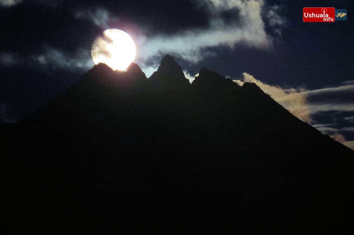 22:12 hs. la luna asoma por detrás del Monte Cinco Hermanos - Un Instante en Ushuaia - Ushuaia-Info