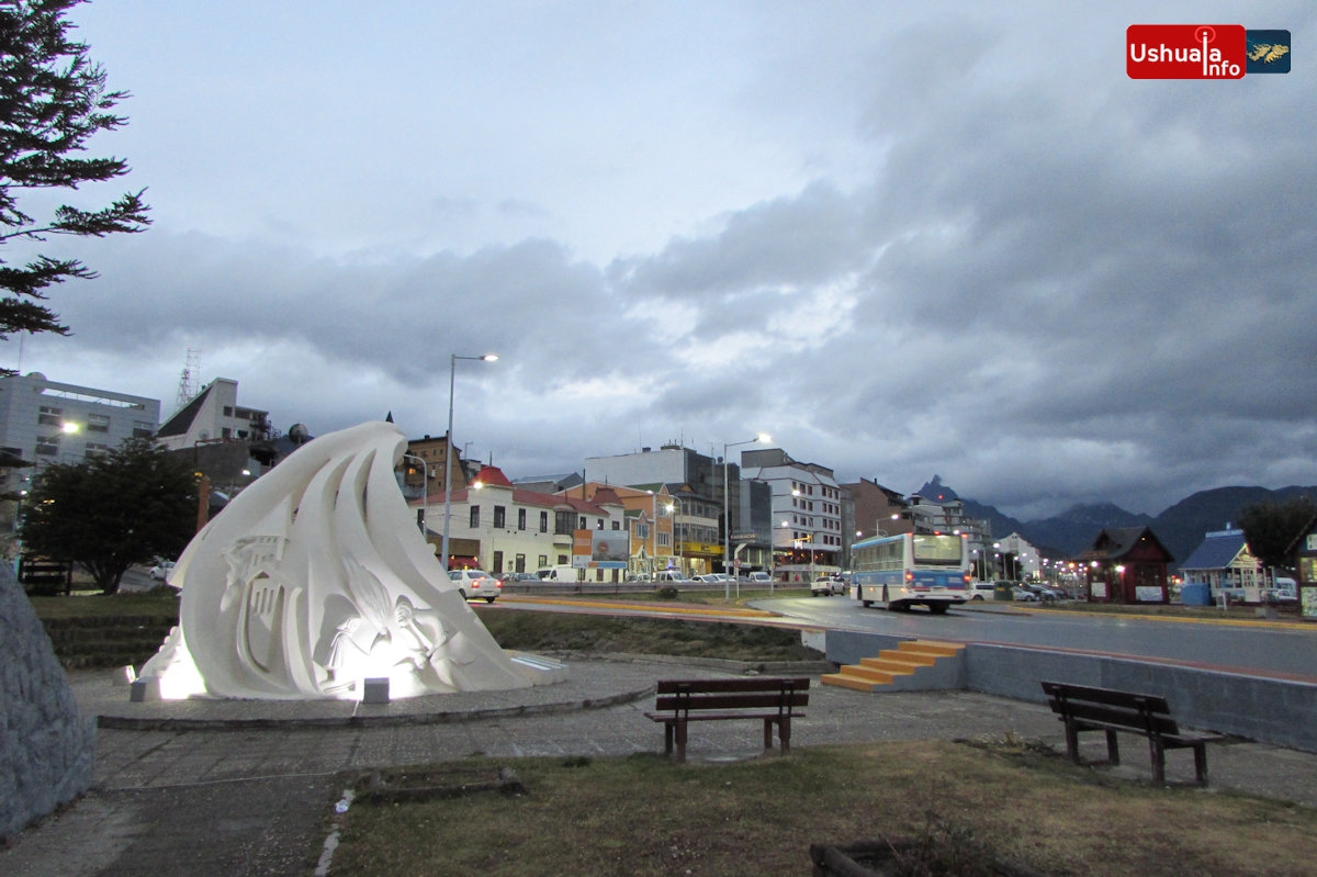 21:22 hs. Monumento a los Antiguos y Pioneros Pobladores - Un Instante en Ushuaia - Ushuaia-Info