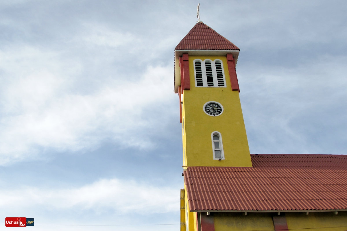 14:55 hs. Torre de la iglesia de Nuestra Señora de la Merced - Un Instante en Ushuaia - Ushuaia-Info