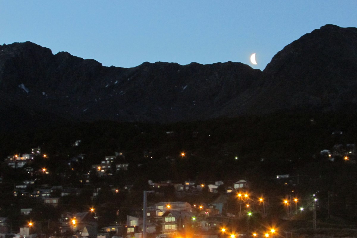 20:36 hs. Un atisbo de luna creciente sobre Ushuaia - Un Instante en Ushuaia - Ushuaia-Info