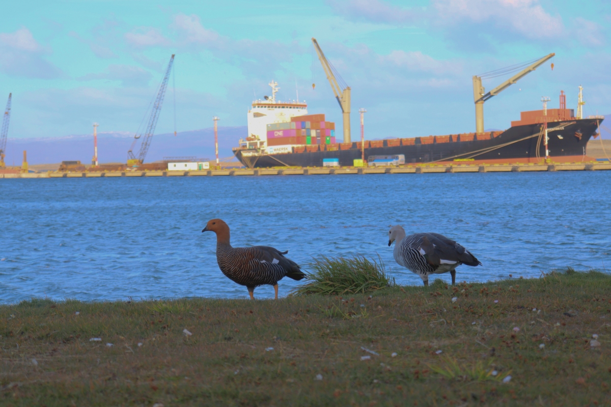 08/05/2022 | 15:06 hs. Una pareja de cauquenes recorre la costa de Ushuaia