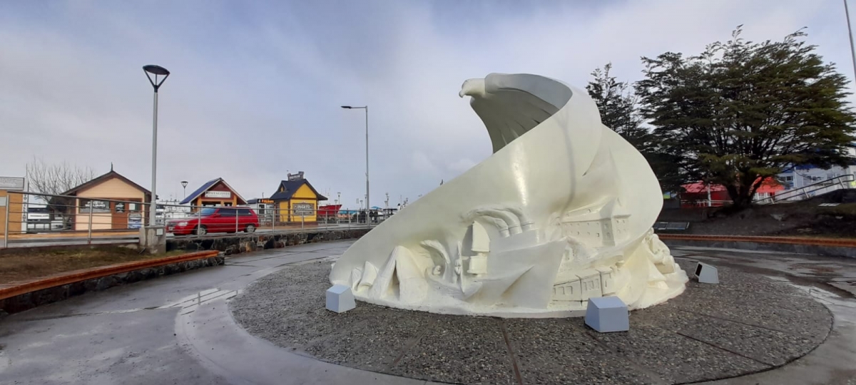 15:37 hs. Monumento a los pobladores pioneros - Un Instante en Ushuaia - Ushuaia-Info
