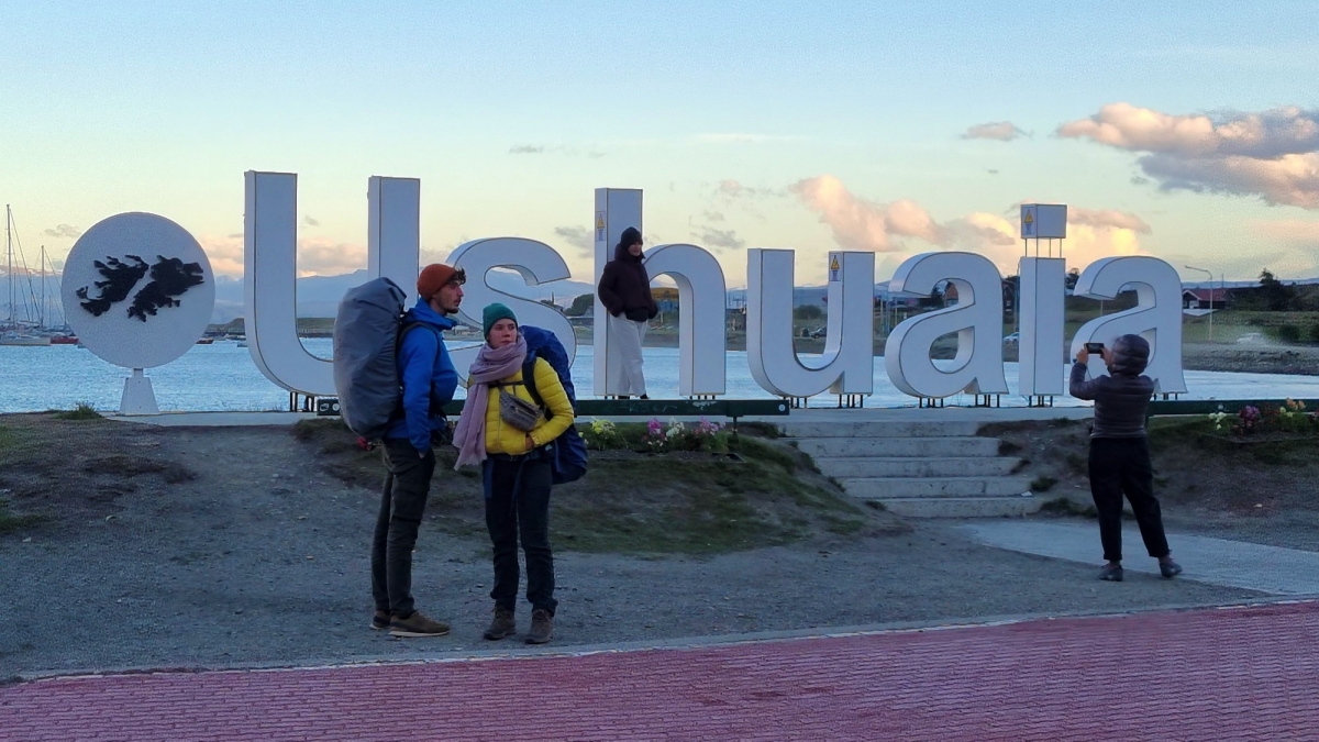 25/11/2022 | 20:39 hs. el cartel de Ushuaia frente a la bahía