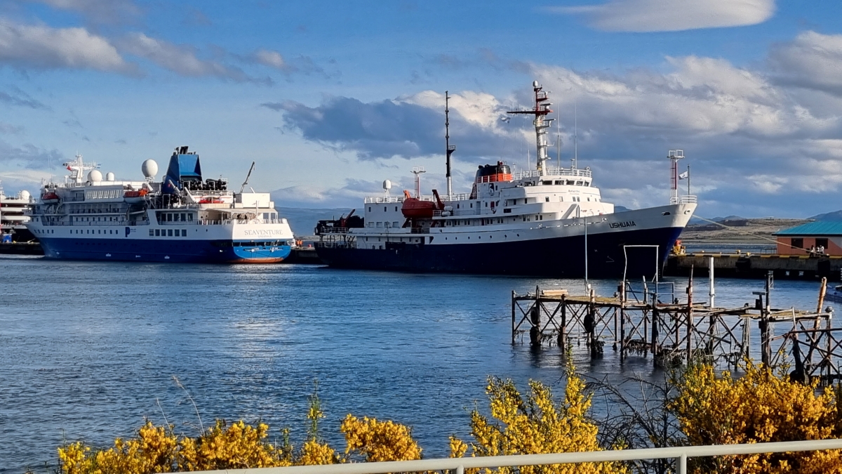 30/11/2022 | 19:21 hs los cruceros MV Ushuaia y Seaventure comparten el muelle