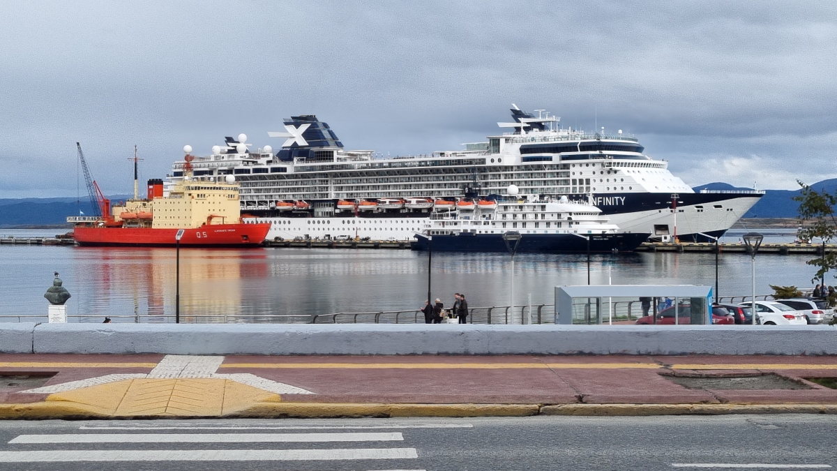 16:24 hs. El rompehielos Irizar junto al crucero Celebrity Infinity - Un Instante en Ushuaia - Ushuaia-Info