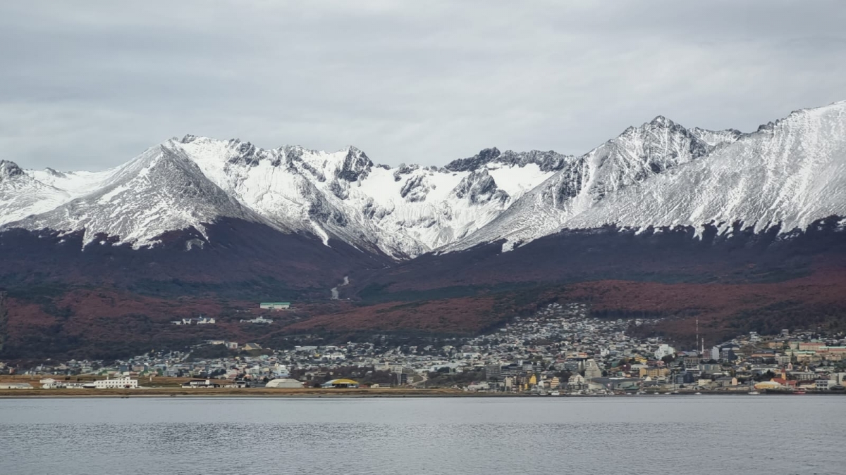 09:31 hs. Vista desde el catamarán de la ciudad y las montañas. - Un Instante en Ushuaia - Ushuaia-Info
