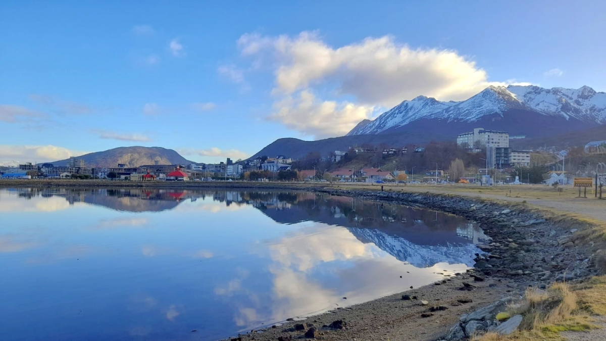 15:33 hs. la bahía Encerrada en espejo - Un Instante en Ushuaia - Ushuaia-Info
