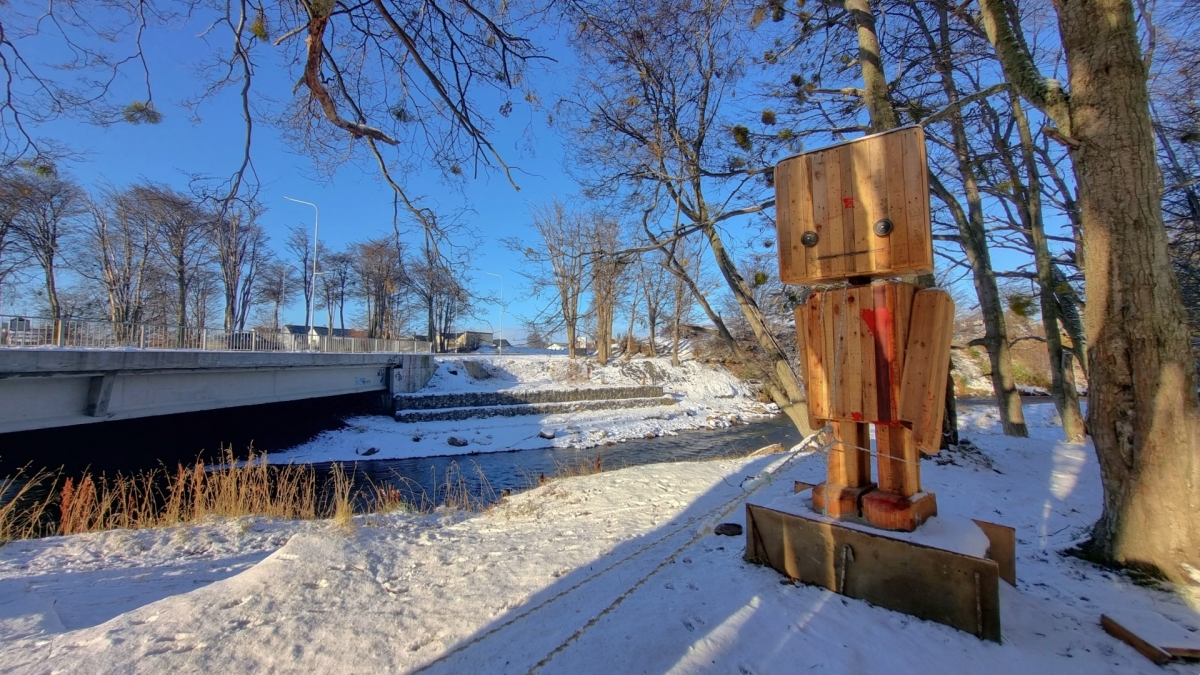 13:32 hs. Una escultura en madera a orillas del rio Pipo - Un Instante en Ushuaia - Ushuaia-Info