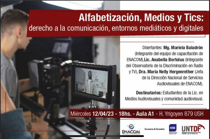 Dictados por integrantes del Programa de Alfabetización en Medios y Tecnologías de la Información y la Comunicación, los talleres promueven desarrollar diferentes capacidades que permitan acceder a los medios de comunicación audiovisuales y a las TIC de manera segura, reflexiva y creativa. “Se trata del primer taller de comunicación con perspectiva de Derechos Humanos y de género que brinda el organismo nacional en la provincia” destacó la Delegada de ENACOM TDF Lic. Paula Catá. “En Río Grande se abordarán temas como: Tratamiento de temáticas vinculadas con las niñeces y adolescencias. Ley N°26.061, Líneas nacionales 141, 144, 145; Aspectos generales de la Ley N°26.522, cobertura responsable sobre las temáticas de discriminación, violencia de género, grooming y la difusión de imágenes sin consentimiento por internet” amplió Catá. “Desde RadioUNTDF venimos trabajando junto a la Delegación de ENACOM desde hace varios años, promoviendo diversos espacios de capacitación y reflexión sobre las prácticas comunicacionales, invitando particularmente a las y los jóvenes de la ciudad que cursan carreras afines a estas temáticas” comentó Elizabeth Furlano coordinadora de RadioUNTDF y docente de la Casa de Estudios. Por su parte, la Mg. Valeria Car hizo hincapié en la necesidad de acompañar y articular con instituciones la comunicación social “es un derecho humano universal y la universidad pública tiene un rol central en la formación desde esta perspectiva” afirmó e invitó a la charla taller “Alfabetización, medios y tics: derecho a la comunicación, entornos mediáticos y digitales”, la misma se dictará en Ushuaia. Los talleres de ENACOM estarán a cargo de integrantes del Observatorio de la Discriminación en Radio y Televisión: Anabella Bortolus, Mg. Mariela Baladrón y Maria Nelly Hergenrether, abogada, jefa del área fiscalización de contenidos radiales y televisivos del ENACOM. El encuentro en Río Grande será el 11 de abril de 15.30 a 17.15 hs., en el Aula 10 de la UNTDF, Thorne 302. Mientras que en Ushuaia, será el 12 de abril de 18 a 20, en Yrigoyen 879. La actividad es gratuita y se entregarán certificados de asistencia a las y los participantes. No requiere inscripción previa. Se solicita puntualidad.Visitas: 5365