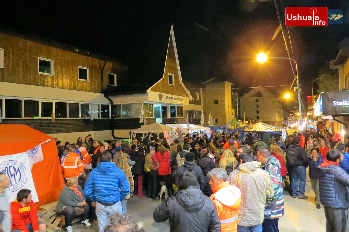 Los trabajadores decidieron también realizar una concentración este Lunes a las 11:00 hs. para realizar una nueva asamblea general. También lanzaron una convocatoria para toda la clase política a las 13:00 hs. Numerosas carpas, estructuras de pallets y algunos trailers ocupan toda la calle con una multitudinaria presencia de trabajadores que llaman la atención de los turistas que transitan por la zona. Los trabajadores reclaman la derogación de las leyes previsionales votadas en Enero pasado por la Legislatura provincial.Visitas: 6866