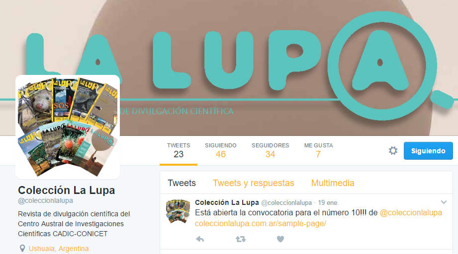 24/01/2017 - La revista de divulgación científica del Centro Austral de Investigaciones Científicas CADIC-CONICET recibe propuestas de artículos para publicar en su próximo número. La publicación que se denomina La Lupa ya lleva nueve ediciones y lanzó una convocatoria de artículos que serán evaluados por su comité editor.