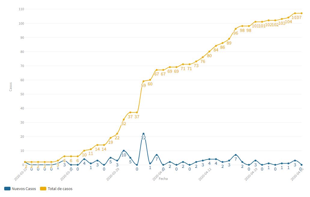 26/04/2020 - Este domingo no se registraron nuevos casos confirmados de COVID-19 en el territorio provincial manteniéndose un total de 130 positivos hasta la fecha.