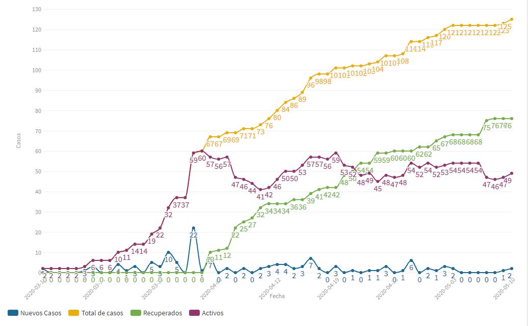 10/05/2020 - Dos nuevos casos de COVID-19 registrados este domingo en la ciudad de Ushuaia elevan el conteo de casos positivos en la provincia a 148 individuos.