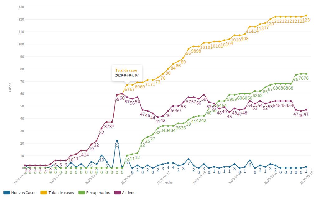 10/05/2020 - Este sábado se registró un nuevo caso de COVID-19 en la ciudad de Ushuaia elevando el total provincial a 146 casos. Los casos correspondientes a Ushuaia son 123 entre los cuales hay 76 pacientes dados de alta.