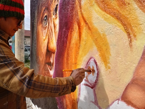 02/11/2018 - El artista plástico peruano Manuel Yava se encuentra en nuestra ciudad realizando un mural inspirado en la cultura de los pueblos originarios fueguinos.