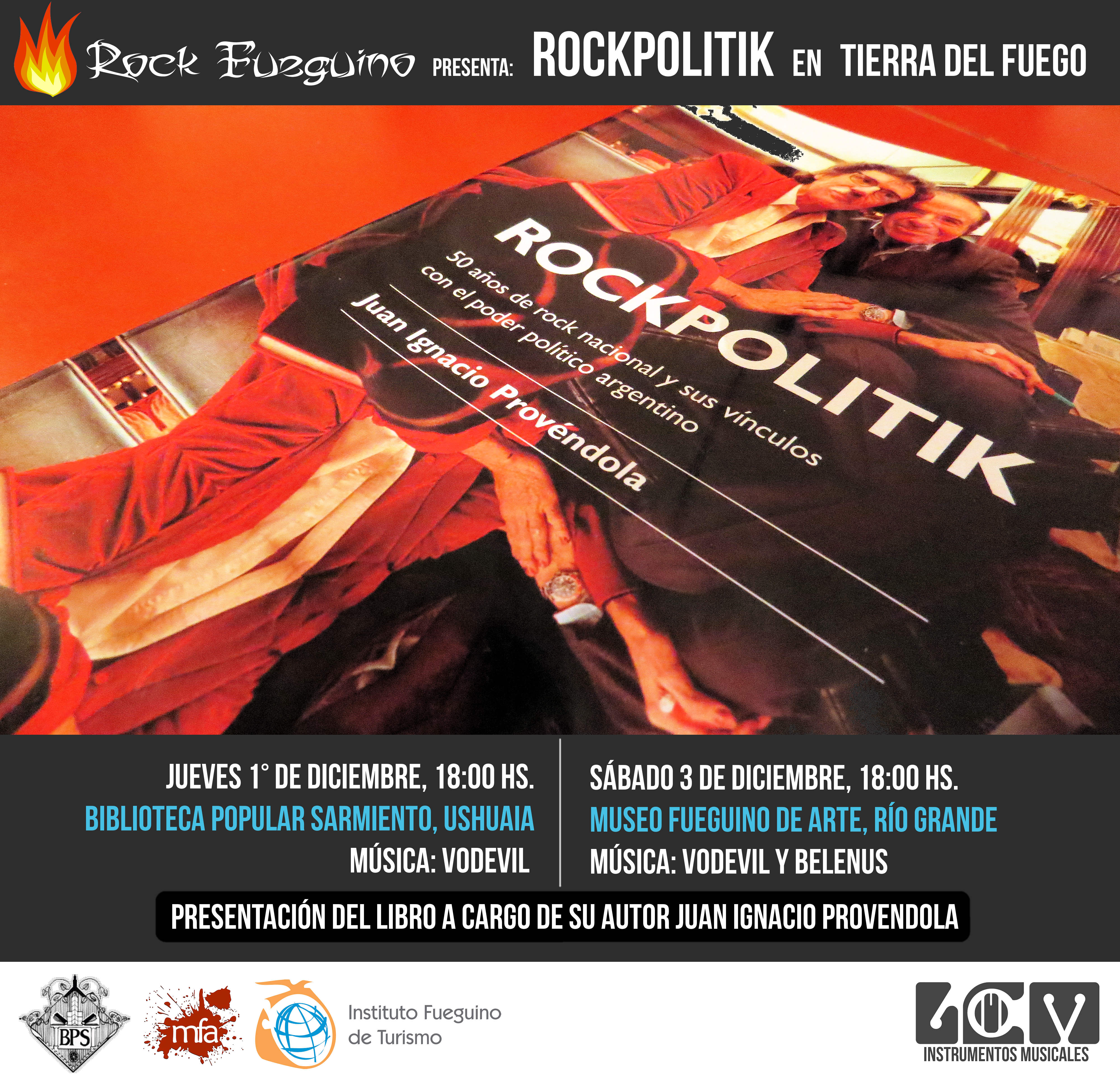24/11/2016 - El periodista Juan Ignacio Provéndola presentará su libro Rockpolitik en Tierra del Fuego. Se trata de un estudio de las relaciones del rock nacional con el poder político a lo largo de sus 50 años de historia, editado por la Editorial Universitaria de Buenos Aires.
