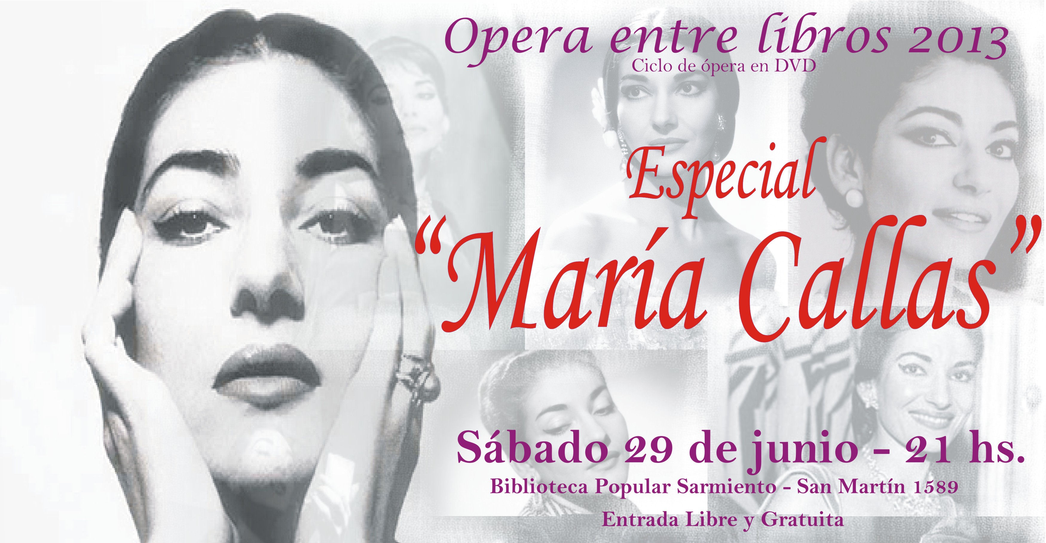 25/06/2013 - El Ciclo Ópera entre libros, que organiza la Biblioteca Ikaukayen del IPES "Florentino Ameghino" junto a la Bibioteca Popular Sarmiento, presenta un especial de María Callas este Sábado 29 de Junio de 2013.