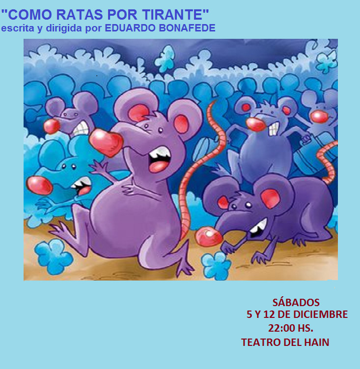 10/12/2015 - Este Sábado 12 de Diciembre de 2015 se realizará una nueva función de la obra "Como ratas por tirante", escrita y dirigida por Eduardo Bonafede.