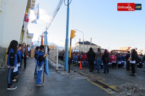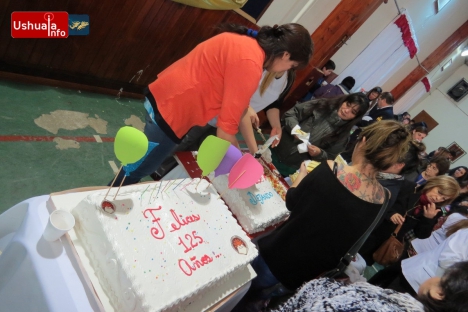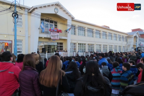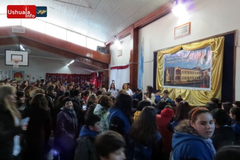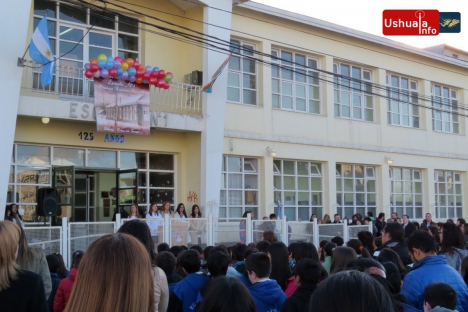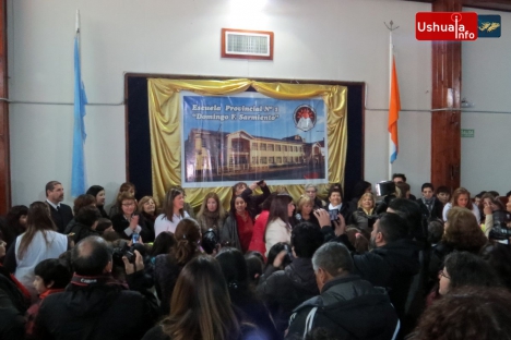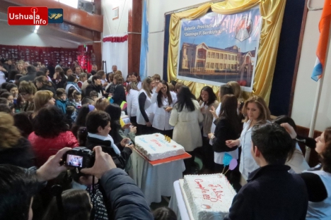 El festejo dió inicio alrededor de las 11:00 hs. y contó con la presencia de la Gobernadora Fabiana Ríos, quién hizo entrega de una placa recordatoria y la Ministra de Educación Sandra Molina. También estuvieron presentes algunos ex alumnos, un grupo de ellos hizo entrega de una placa conmemorativa de sus 25 años de egresados; también se hizo presente la presidente del Partido Federal Fueguino Liliana "Chispita" Fadul -proveniente de una familia muy ligada a la institución- quien obsequió las tortas para la celebración; además, participaron padres y docentes que transitaron por sus aulas y vecinos y turistas que a esa hora por allí pasaban. Los alumnos y docentes entonaron una canción dedicada a la escuela, y luego finalizado el acto todos compartieron torta y chocolate caliente. Cabe destacar que en el gimnasio de la escuela se había montado una pequeña muestra con fotografías, mobiliario antiguo y videos para conocer un poco más la historia de la primera escuela de la provincia. Sobre la Escuela 1
