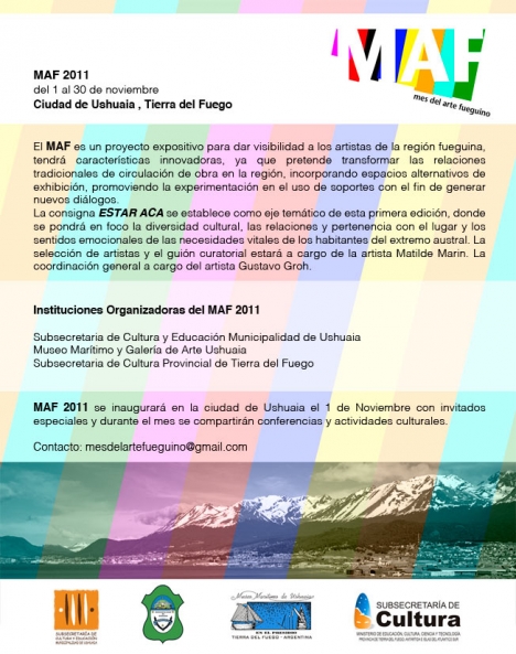 12/04/2011 - El próximo 20 de Abril de 2011 vencerá el plazo para los interesados en participar de la primera edición del MAF, el Mes del Arte Fueguino.