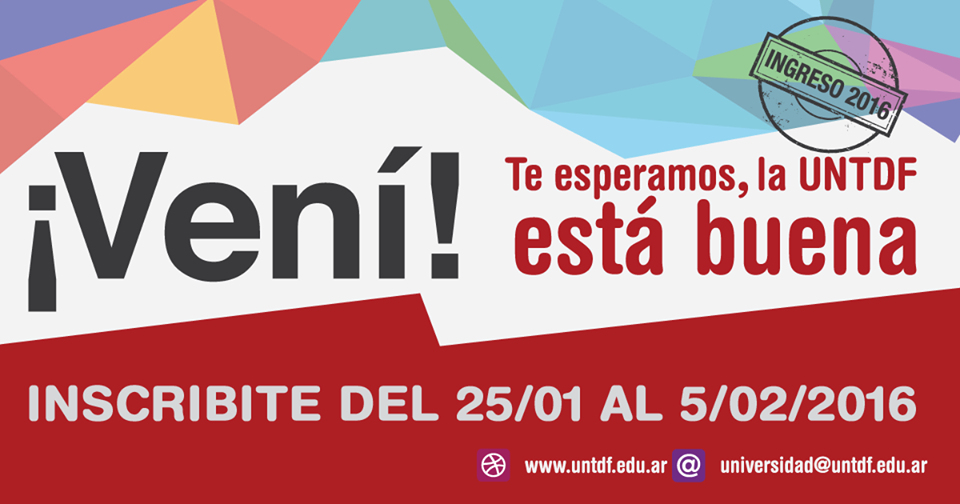 27/01/2016 - Las inscripciones del periodo 2016 para aspirantes a cursar carreras en la Universidad Nacional de Tierra del Fuego -UNTDF- se han extendido hasta el 5 de Febrero.