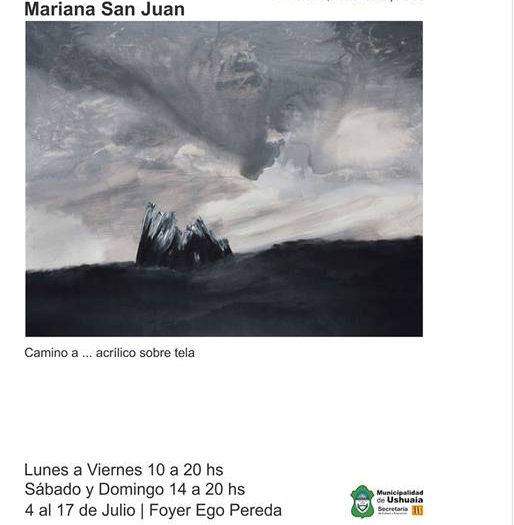 La muestra es de la artista Mariana San Juan. Se compone de pinturas tipo mural de paisajes fueguinos. La exposición permanecerá en el Foyer de la Casa de la Cultura