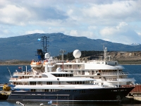 El super yate Archimedes se encuentra amarrado en Ushuaia