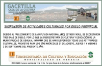 Suspensión de actividades culturales por duelo provincial