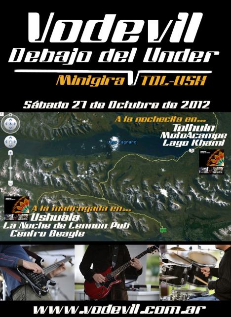 En el flamante municipio de Tolhuin Vodevil participará en el Motoacampe organizado por los Mosquitos Fueguinos en el camping del Lago Khami; en tanto que en Ushuaia la banda se sumará a la fiesta de Lennon Pub que se desarrollará en el Centro Beagle junto a una decena de artistas más.