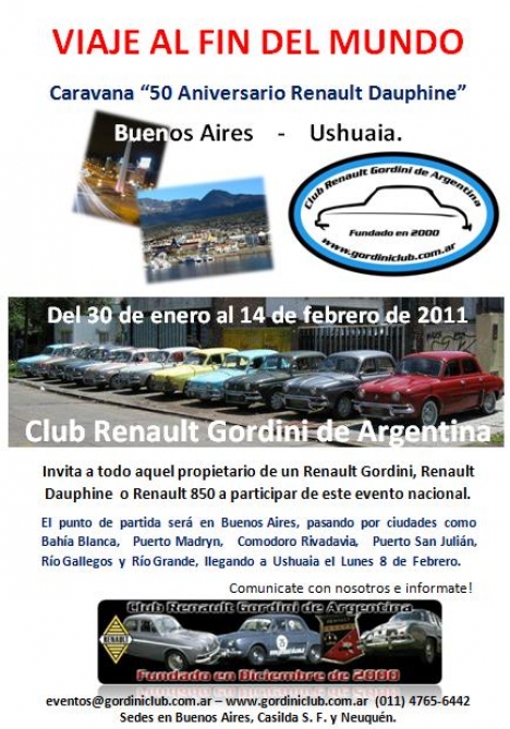 09/02/2011 - La caravana 50 Aniversario Renault Dauphine llegó a Ushuaia para celebrar el cincuentenario del primer automóvil Renault fabricado en la Argentina.