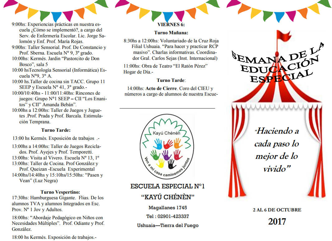 02/10/2017 - Del 2 al 6 de Octubre de 2017 la Escuela Especial Kayu Chenén realizará la Semana de la Educación Especial.