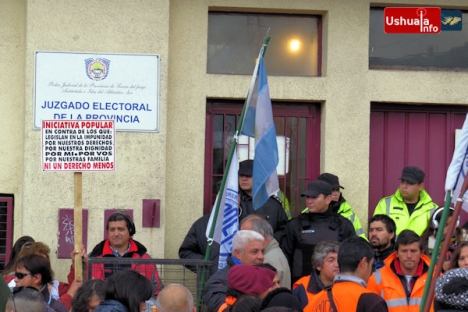 En la Justicia Electoral fueron recibidas y certificadas las 20.115 firmas que se sumaron para solicitarle a la Legislatura una sesión especial para tratar la modificación del paquete de leyes de ajuste que inició el conflicto. Mientras se realizaba el proceso de certificación de las planillas, los manifestantes se desplazaron por Piedrabuena hasta la Avenida Maipú y por esa vía hasta la calle Onas para entregar una copia de las firmas ante los bloques legislativos. Allí fueron recibidos por empleados administrativos que recibieron las planillas ante la ausencia del vicegobernador Arcando. Finalmente la manifestación se dirigió por la Avenida San Martín de regreso al acampe en donde se realizó una reunión informativa de cierre. La Unión de Gremios y Jubilados de Tierra del Fuego busca lograr un recurso de consideración de la iniciativa popular que fuera declarada inadmisible por el Juez Alejandro Fernandez la semana pasada. El piso de 9.400 firmas necesario para solicitar una sesión especial fue ampliamente superado por la convocatoria llevada adelante por los empleados estatales.