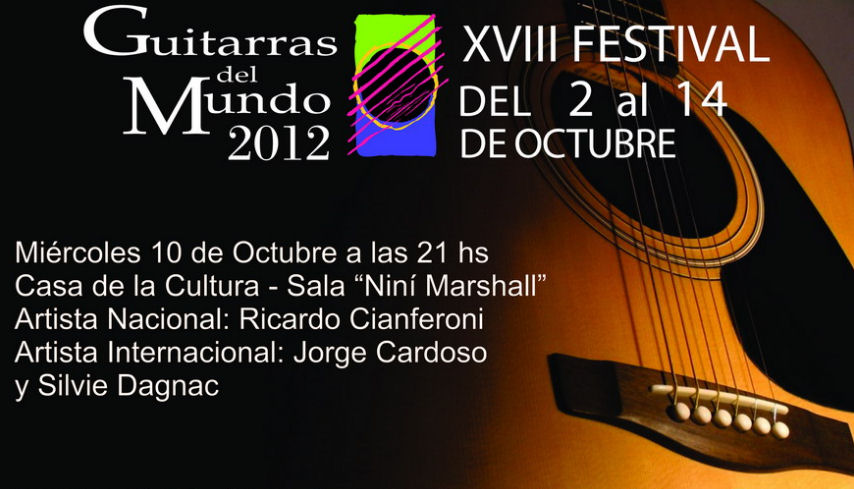 05/10/2012 - El XVIII Festival de Guitarras del Fin del Mundo tendrá lugar en nuestra ciudad este Miércoles 10 de Octubre. Y en esta oportunidad contará con la presencia de los prestigiosos músicos Ricardo Cianferoni, Jorge Cardoso y Silvie Dagnac.