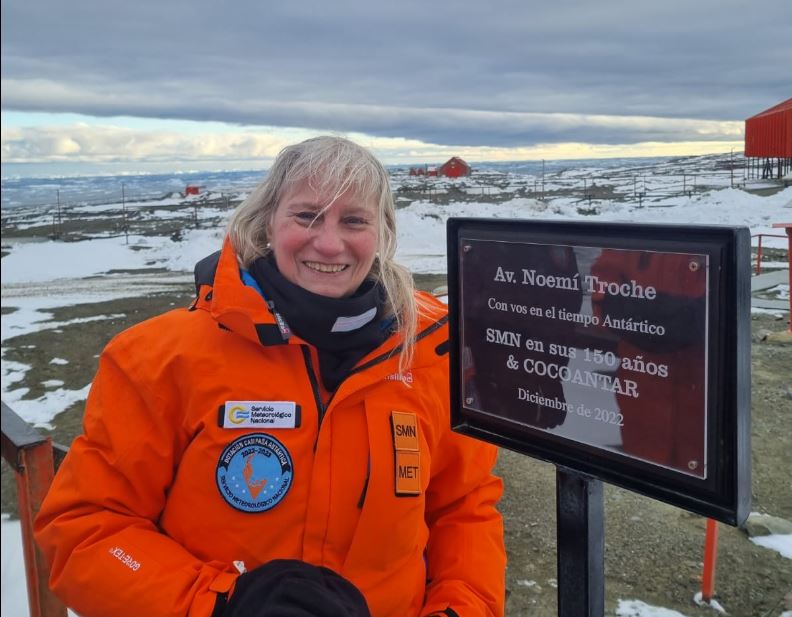 La Avenida Noemí Troche fue bautizada en diciembre del 2022 y lleva un cartel que indica "Con vos en el tiempo Antártico. SMN en sus 150 años & COCOANTAR". Noemí Troche es una especialista en la meteorología antártica que desde hace 18 años desarrolla su tarea en la base Marambio. Es pronosticadora aeronáutica y su función y desempeño es fundamental para que las dotaciones puedan desarrollar sus tareas. La directora del SMN Celeste Saulo expresó "con este reconocimiento estamos poniéndole nombre y apellido a una pasión que sólo los antárticos conocen y comparten, de la cual vos sos una abanderada. Estamos seguros de que es un verdadero homenaje que respeta las tradiciones antárticas, esos códigos invisibles que se tejen entre quienes trabajan en la Antártida”. Y añadió “Gracias, Noemí, por tu trabajo, por el ejemplo que le das a quienes te rodean, por tu profesionalismo y tu calidad humana". A su tiempo Noemí Troche indicó "el homenaje me genera mucha emoción, sentir que soy la cara visible de un equipo y de mucha gente que trabaja para Antártida" y agregó "gracias al SMN por colocar el nombre de una meteoróloga en esta zona".Visitas: 12587