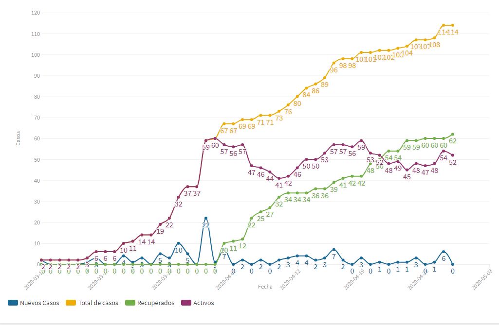 30/04/2020 - El parte epidemiológico correspondiente al 29 de abril de 2020 indica que no se detectaron nuevos casos de COVID-19 manteniéndose el número de casos en la provincia en 137.
