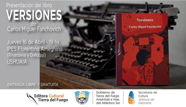 08/04/2015 - El Jueves 16 de Abril de 2015 se realizará la presentación del libro Versiones Carlos Miguel Fanchovich editado por la Editora Cultural Tierra del Fuego.