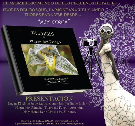 16/05/2013 - La fotógrafa y expedicionaria Perla Bollo presentará un volumen dedicado a la macrofotografía de flores fueguinas. El libro lleva por nombre Flores de Tierra del Fuego y es definido por Bollo como un recorrido por "el asombroso mundo de los pequeños detalles. Flores del bosque, la montaña y el campo. Flores para ver desde... muy cerca".