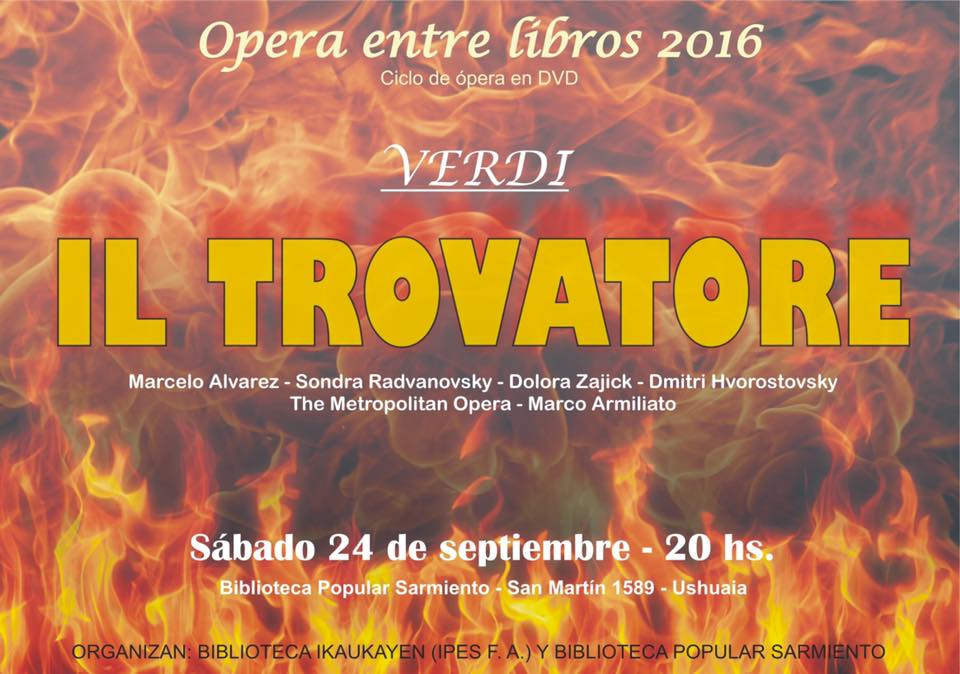 Este Sábado en el ciclo Opera en DVD proyectarán Il Trovatore, de Verdi. El encuentro tendrá lugar en la Biblioteca Popular Sarmiento.