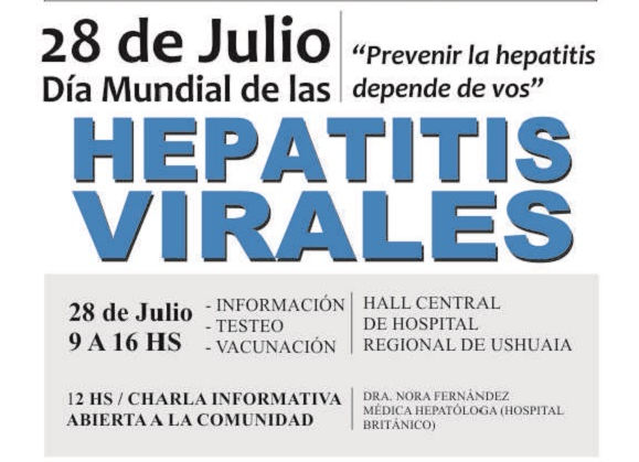 La Organización Mundial de la Salud -OMS- instauró el 28 de Julio como el "DÃa Mundial contra las Hepatitis Vitales". En Ushuaia se realizarán actividades en el Hospital Regional de Ushuaia -HRU- y en Centros de Salud.