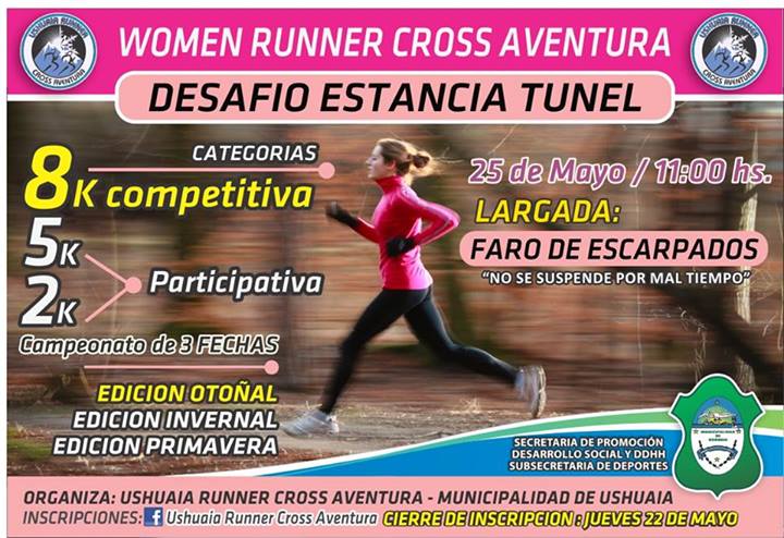 08/05/2014 - El 25 de Mayo de 2014 se realizará el Desafío Estancia Tunel Women Runner Cross Aventura, un evento deportivo destinado a las mujeres en todos los niveles: caminantes, principiantes y atletas.