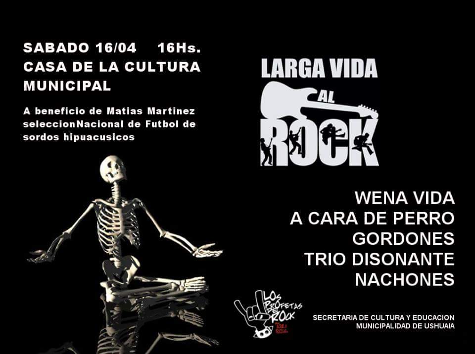 El encuentro de bandas Larga Vida al Rock se realizará hoy, Sábado 16 de Abril de 2016, en la Casa de la Cultura. El evento es a beneficio del deportista MatÃas MartÃnez.