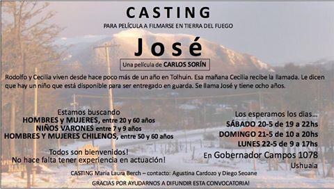 19/05/2017 - Este fin de semana se realizará en Ushuaia un casting actoral con vistas a la filmación de "José", la próxima película del realizador Carlos Sorín.