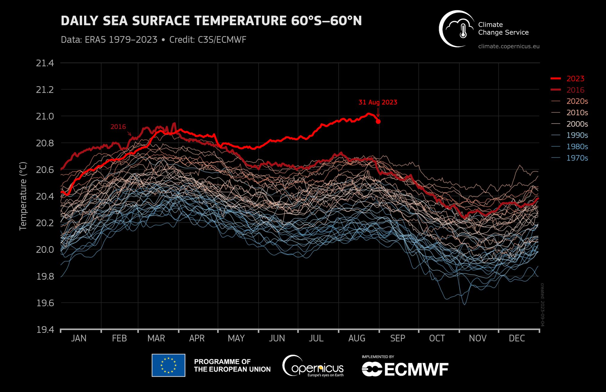 El Servicio de Cambio Climático Copernicus (C3S) registra la temperatura global desde la decada de 1970